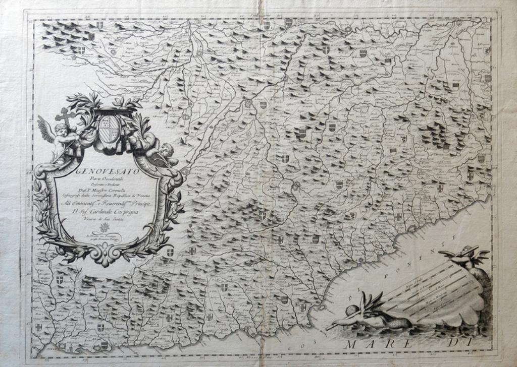 Genovesato. Parte Occidentale, Descritto e Dedicato dal P. Maestro Coronelli Cosmografo della Serenissima Republica di Venetia. All'Eminentis.mo, e Reverendis.mo Principe, il Sig.r Cardinale Carpegna Vicario di Sua Santità.
